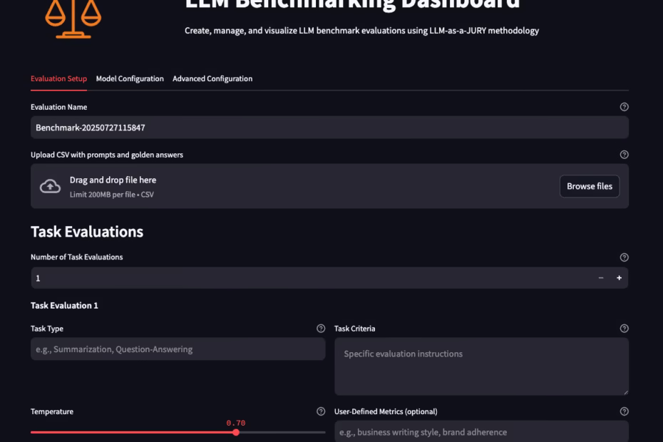 This is where you specify the CSV file with sample prompts, task type, and task criteria according to your needs.